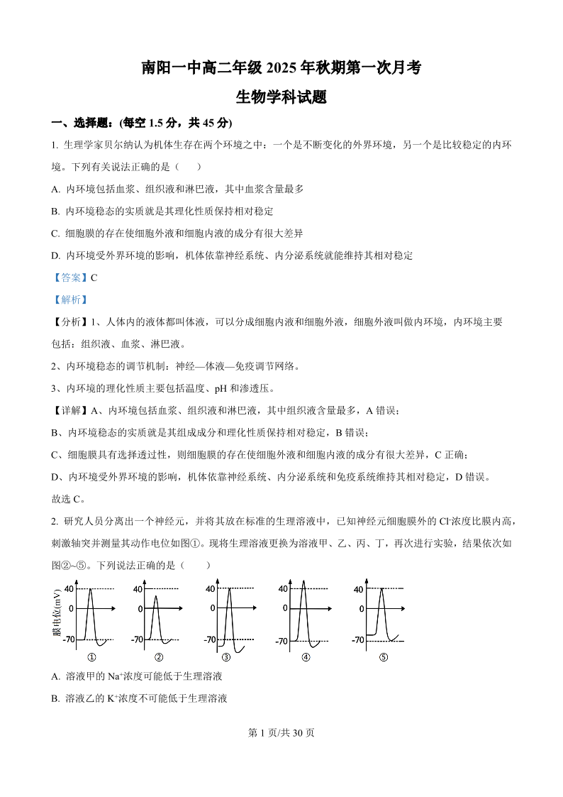 南阳一中高二年级2025年秋期第一次月考 生物答案.pdf