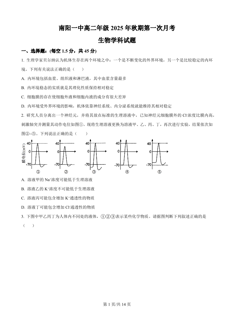 南阳一中高二年级2025年秋期第一次月考 生物.pdf