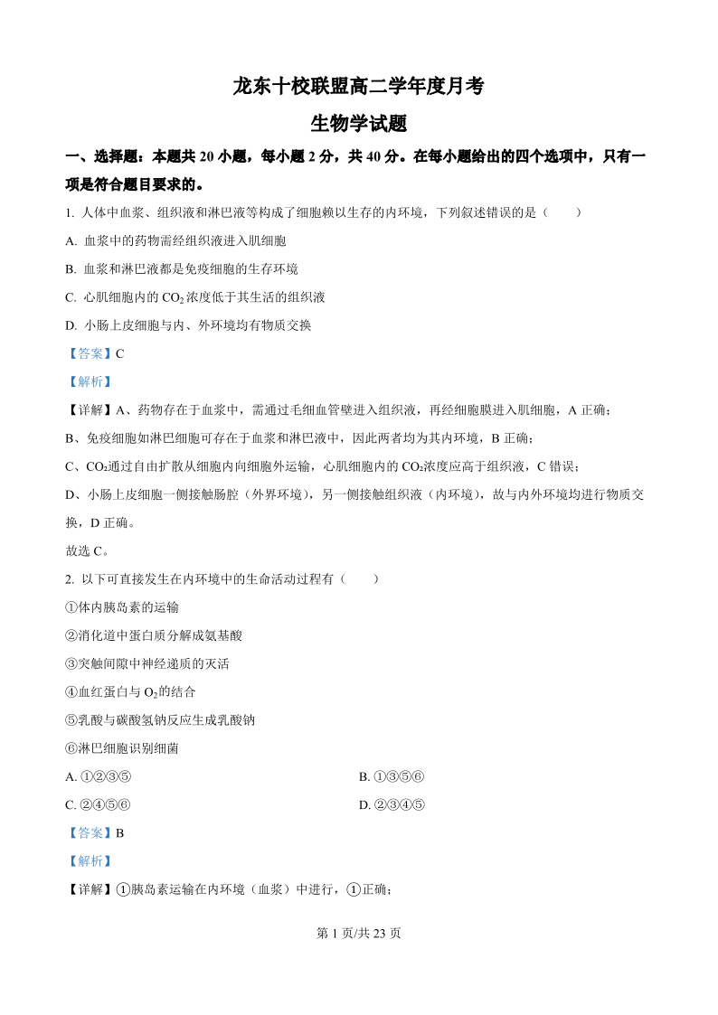 黑龙江省龙东十校联盟2025-2026学年高二上学期10月月考 生物答案.pdf