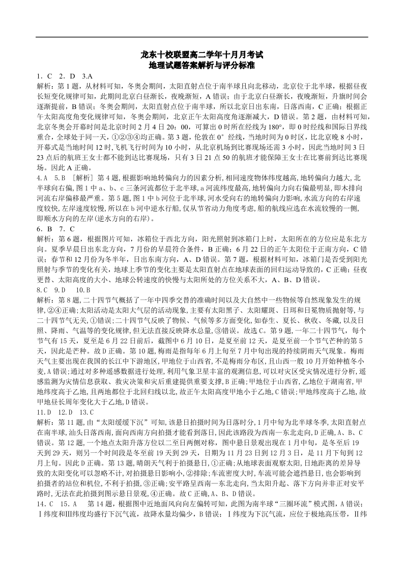 黑龙江省龙东十校联盟2025-2026学年高二上学期10月月考 地理答案.pdf