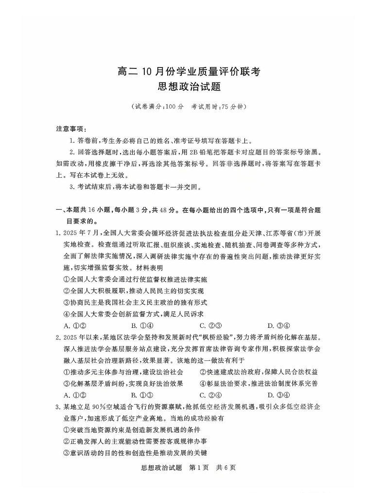 山西省T8联盟2025-2026学年高二10月学业质量评价联考 政治.pdf