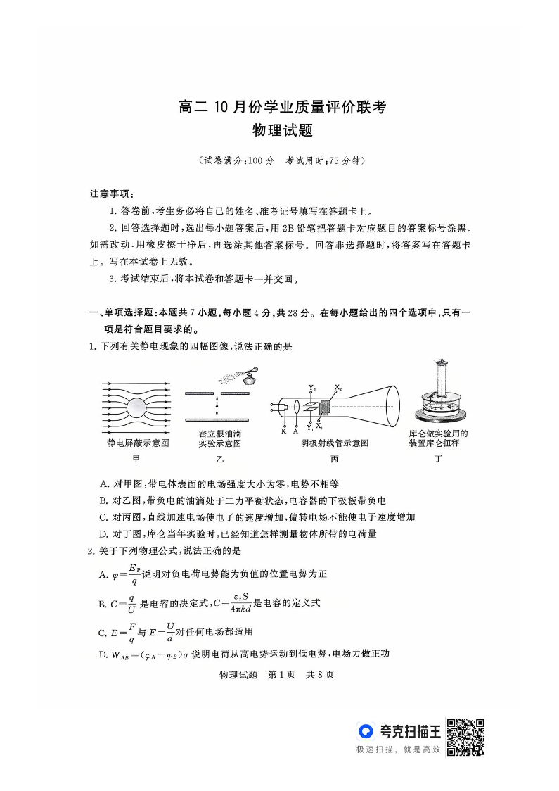 山西省T8联盟2025-2026学年高二10月学业质量评价联考 物理.pdf
