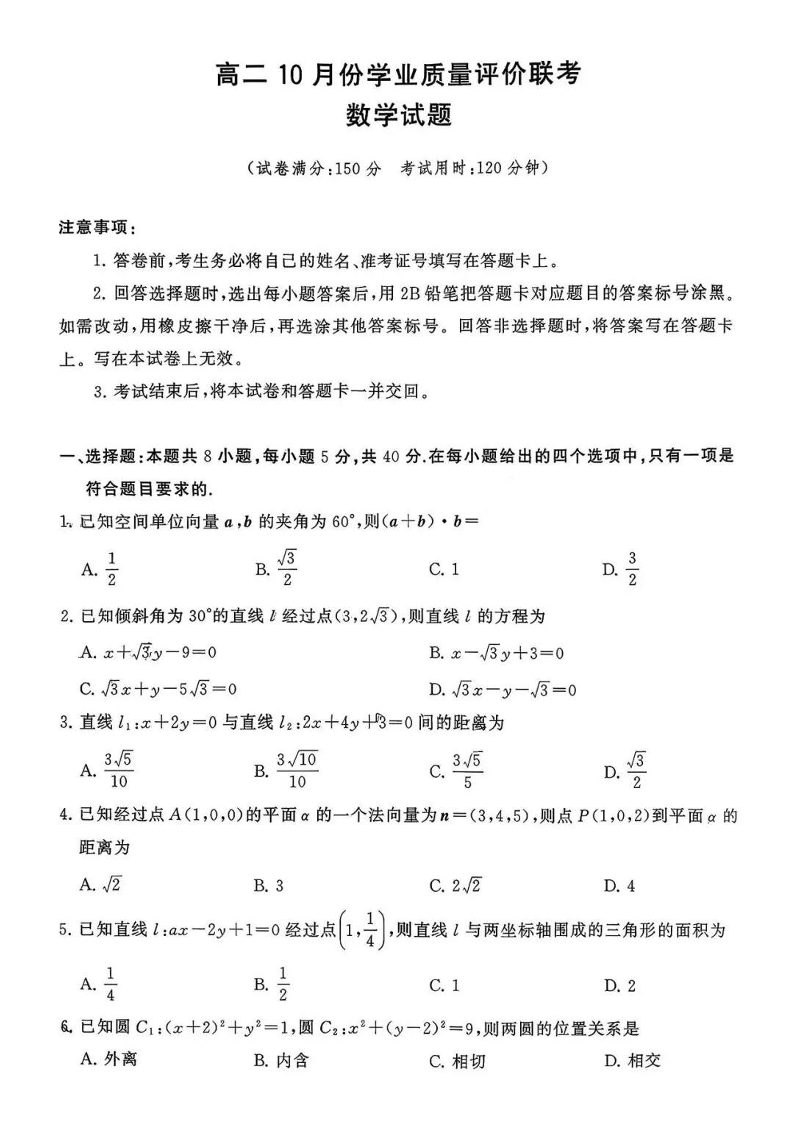 山西省T8联盟2025-2026学年高二10月学业质量评价联考 数学.pdf