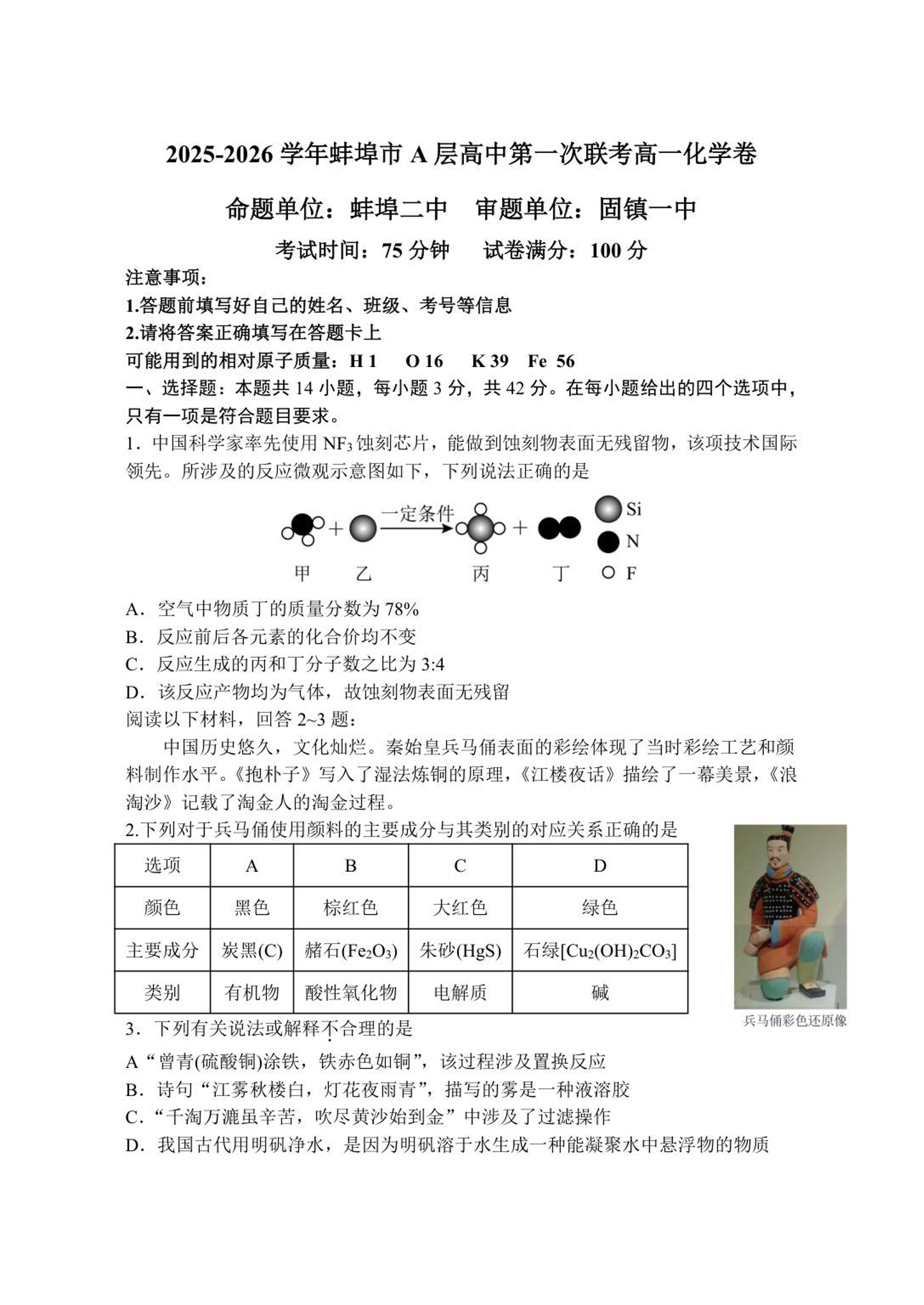 安徽省蚌埠市A层高中2025-2026学年高一上学期10月月考 化学.pdf