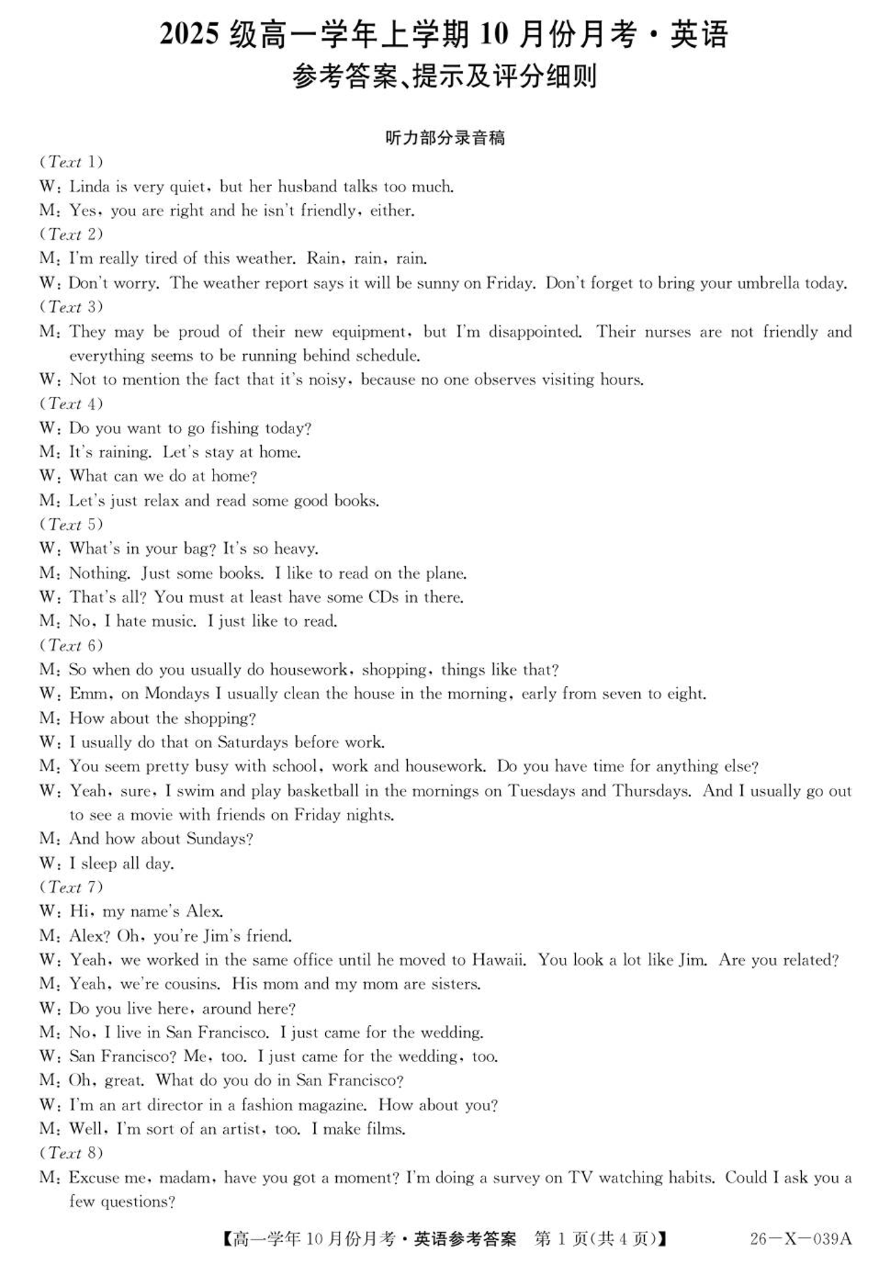 黑龙江省龙东十校联盟2025-2026学年高一上学期10月月考 英语答案.pdf