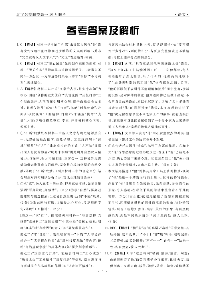 辽宁省名校联盟2025年高一10月份联合考试 语文答案.pdf