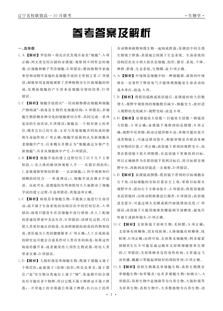 辽宁省名校联盟2025年高一10月份联合考试 生物答案.pdf
