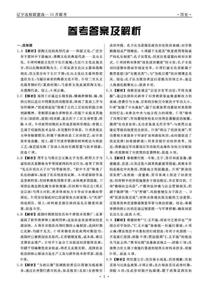 辽宁省名校联盟2025年高一10月份联合考试 历史答案.pdf
