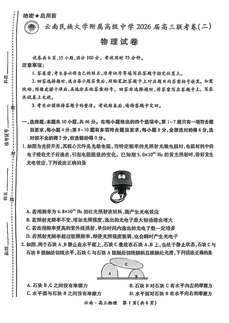 云南民族大学附属高级中学2026届高三联考卷(二)物理.pdf