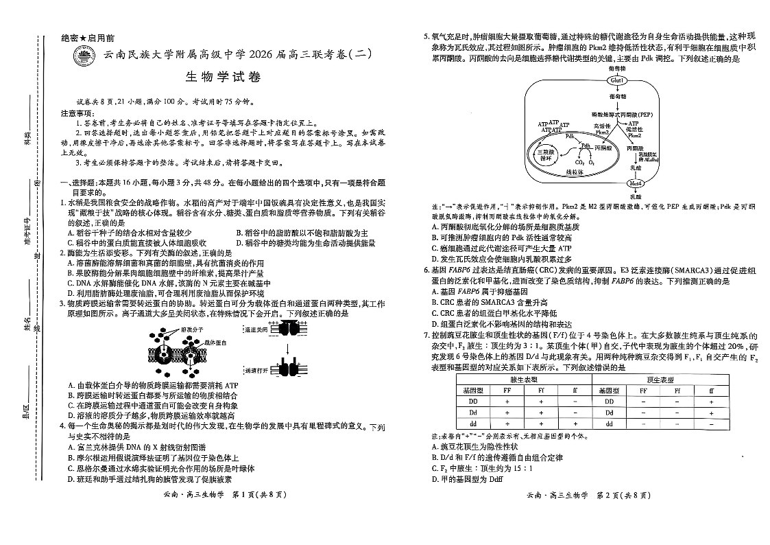 云南民族大学附属高级中学2026届高三联考卷(二)生物.pdf