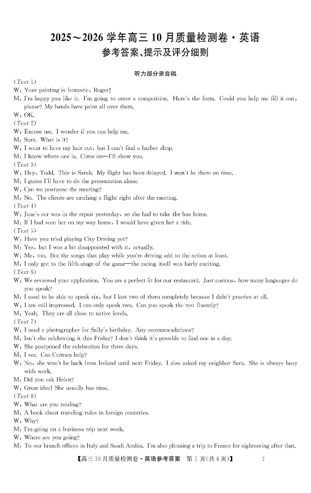 山西三晋卓越联盟2025-2026高三10月质量检测 英语答案.pdf