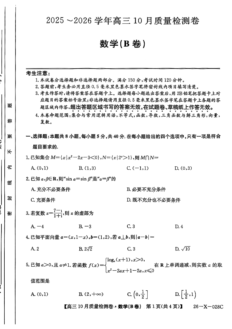 山西三晋卓越联盟2025-2026高三10月质量检测 数学(B).pdf