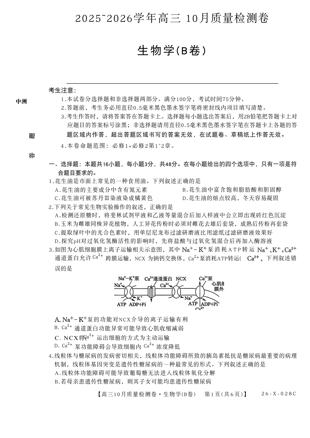 山西三晋卓越联盟2025-2026高三10月质量检测 生物(B).pdf