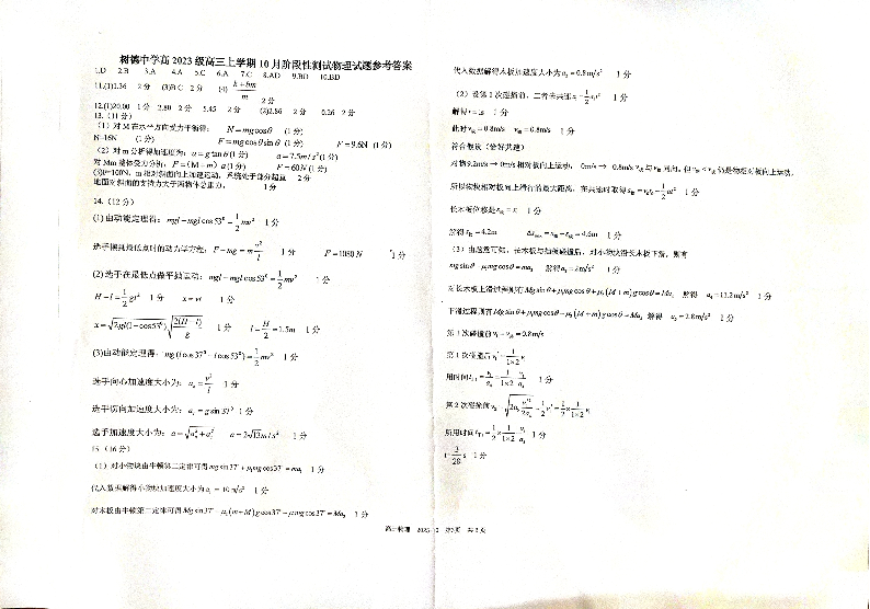 树德中学2025-2026学年高三上学期10月月考 物理答案.pdf