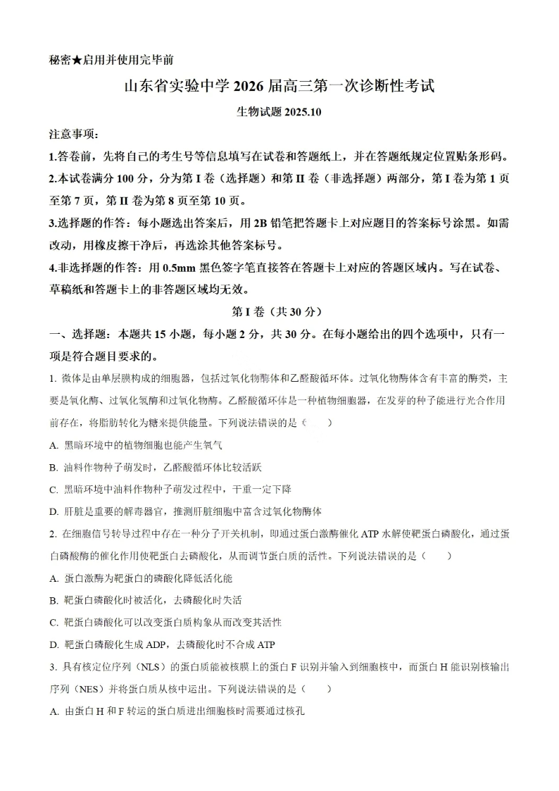 山东省实验中学2026届高三第一次诊断考试 生物.pdf
