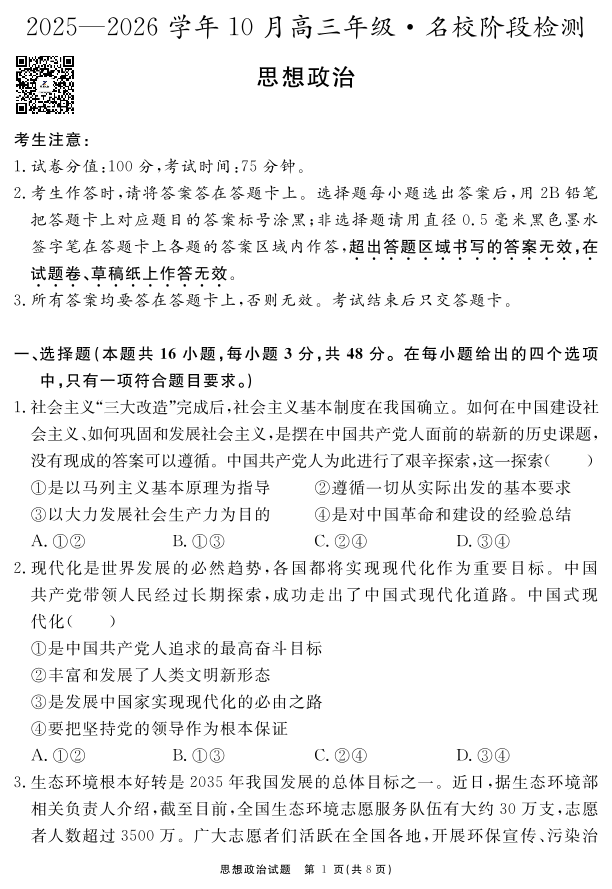 安徽省2025—2026学年度“耀正优”高三年级10月阶段检测 政治.pdf