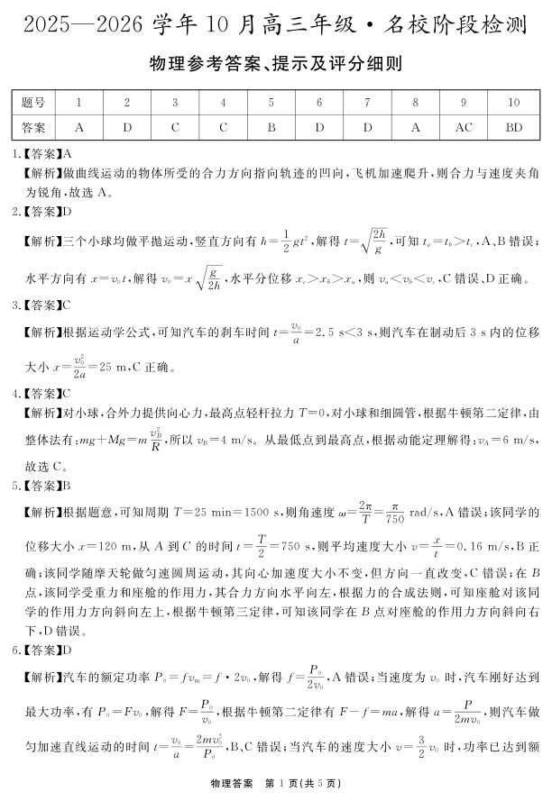 安徽省2025—2026学年度“耀正优”高三年级10月阶段检测 物理答案.pdf