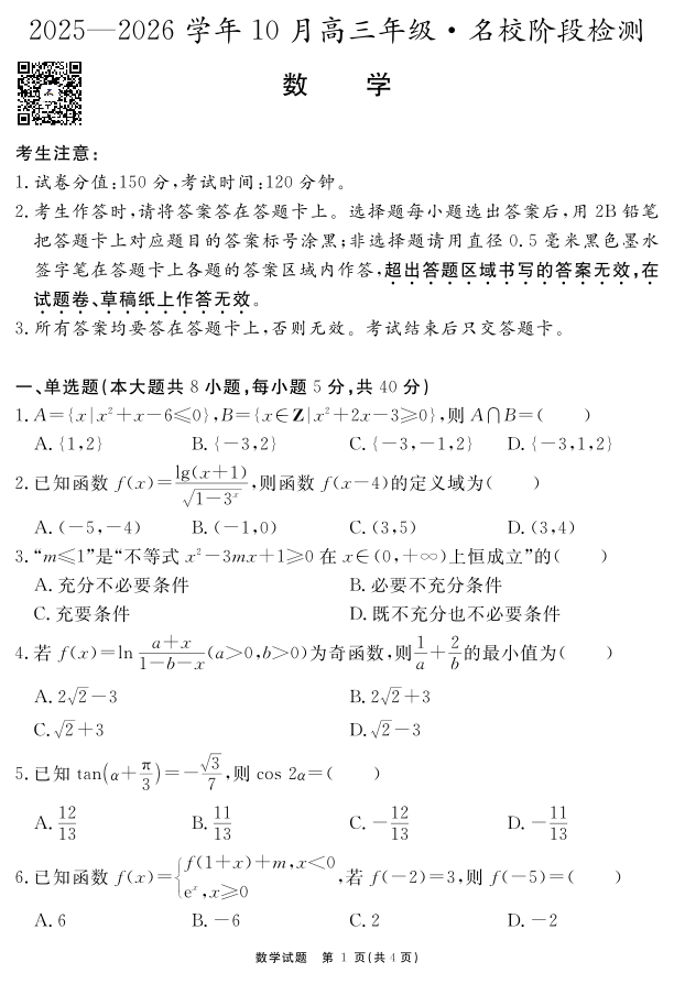 安徽省2025—2026学年度“耀正优”高三年级10月阶段检测 数学.pdf