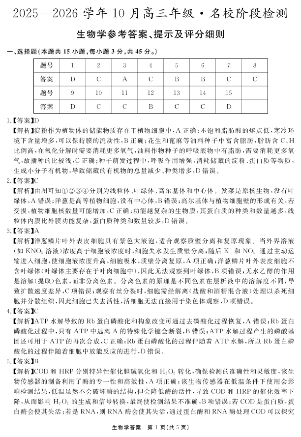 安徽省2025—2026学年度“耀正优”高三年级10月阶段检测 生物答案.pdf
