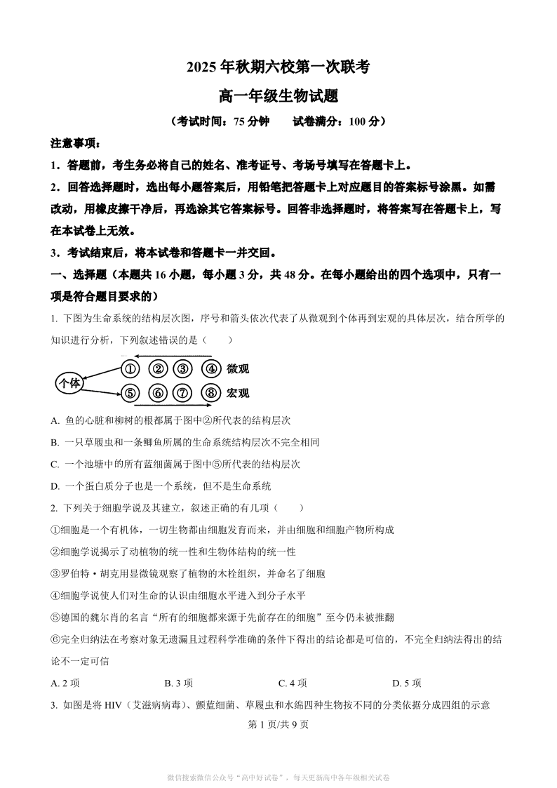 河南省南阳市2025年秋期六校第一次联考 生物.pdf