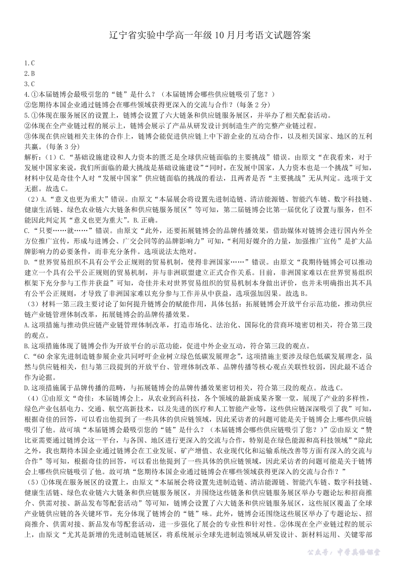 辽宁省实验中学2025-2026年高一上10月月考 语文答案.pdf