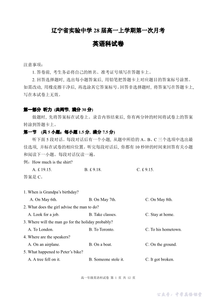 辽宁省实验中学2025-2026年高一上10月月考 英语.pdf