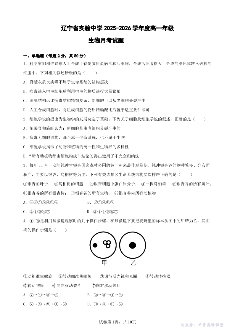 辽宁省实验中学2025-2026年高一上10月月考 生物.pdf