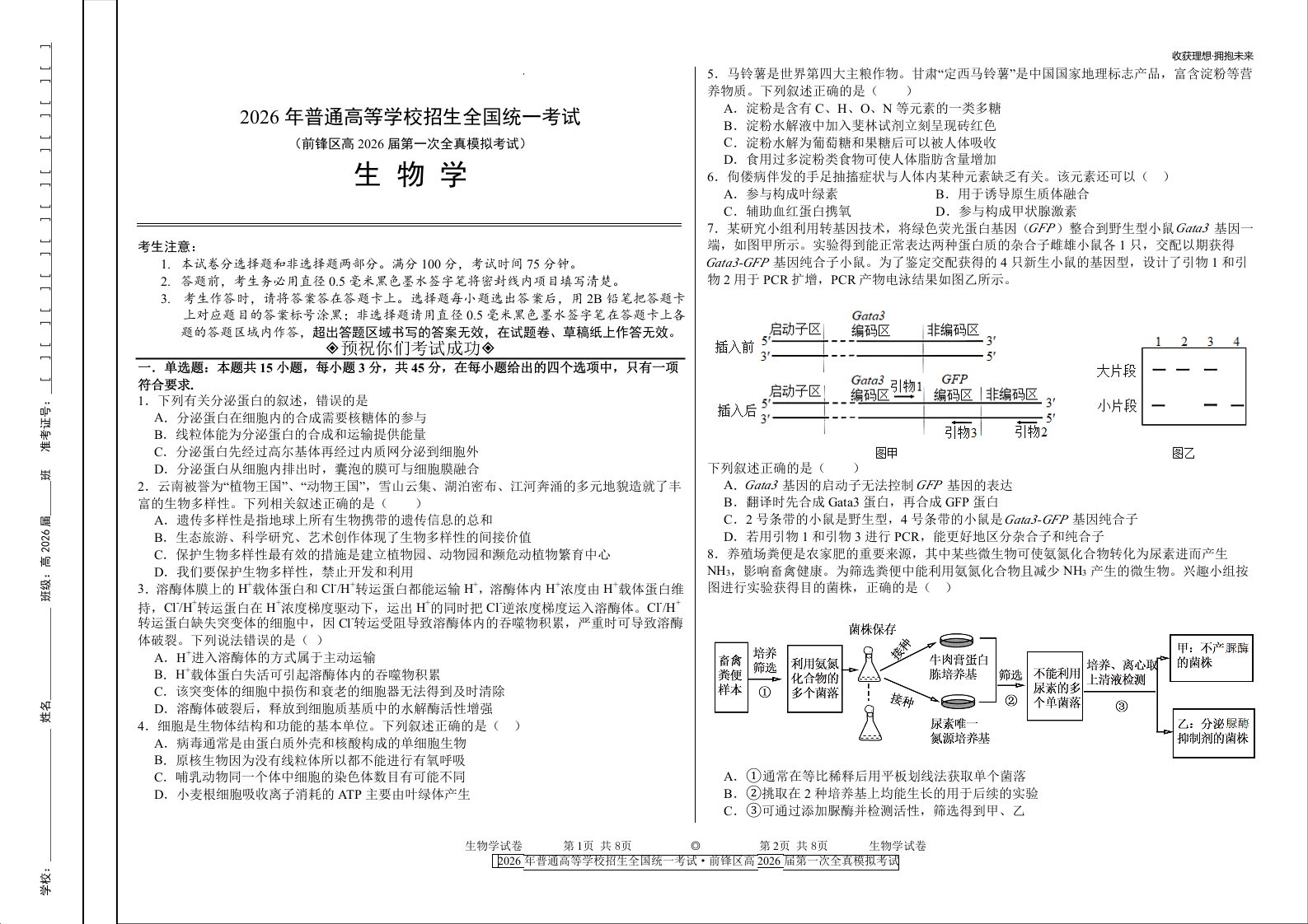 前锋区高2026届第一次全真模拟考试 生物.docx