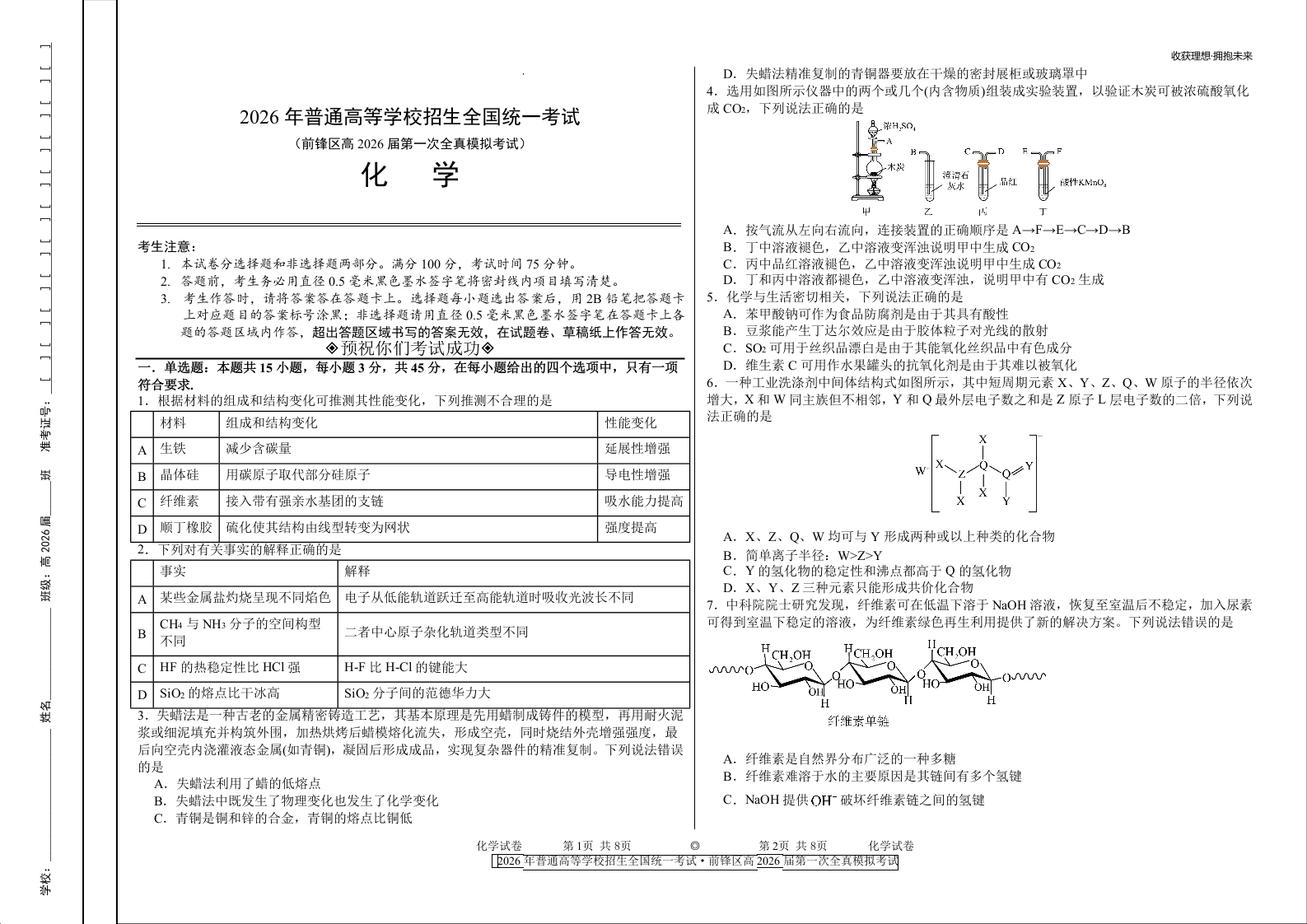 前锋区高2026届第一次全真模拟考试 化学.docx