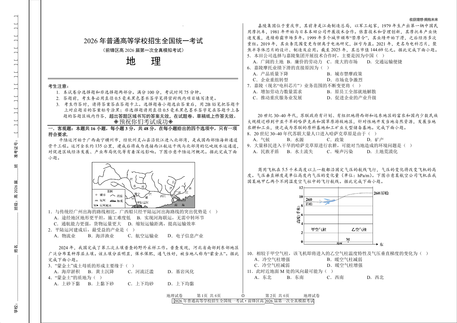 前锋区高2026届第一次全真模拟考试 地理.docx