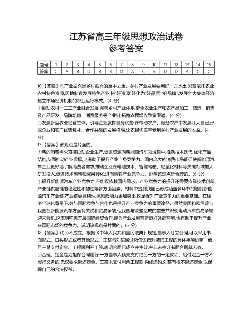 江苏省部分学校2025-2026学年高三年级10月联考 政治答案.pdf