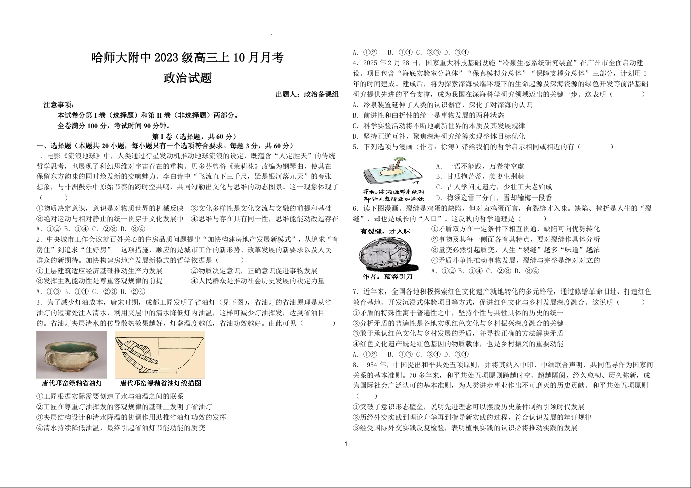 哈师大附中2023级高三上学期10月月考 政治.docx