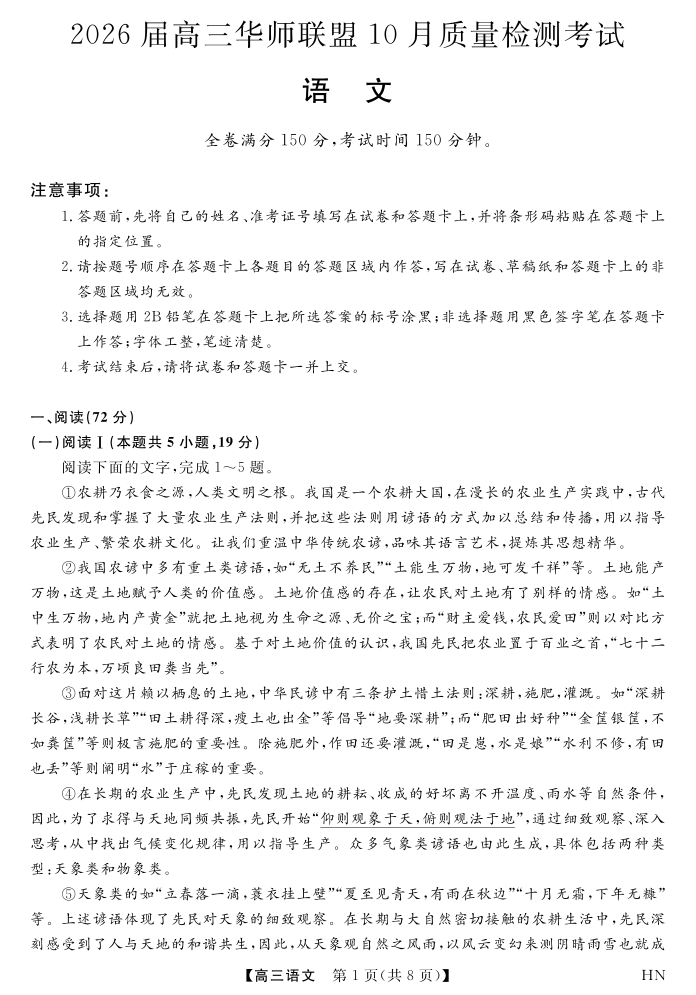 2026届高三华师联盟10月质量检测考试 语文.pdf