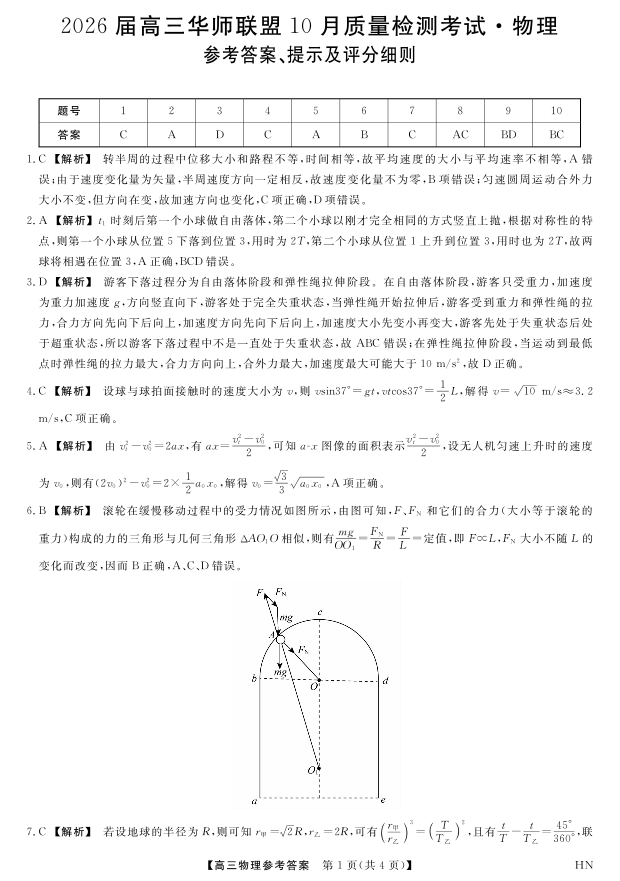 2026届高三华师联盟10月质量检测考试 物理答案.pdf