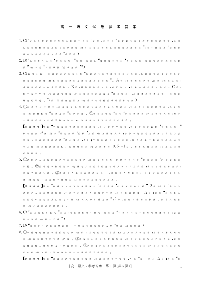 江西省2025-2026学期高一上学期10月联考 语文答案.pdf