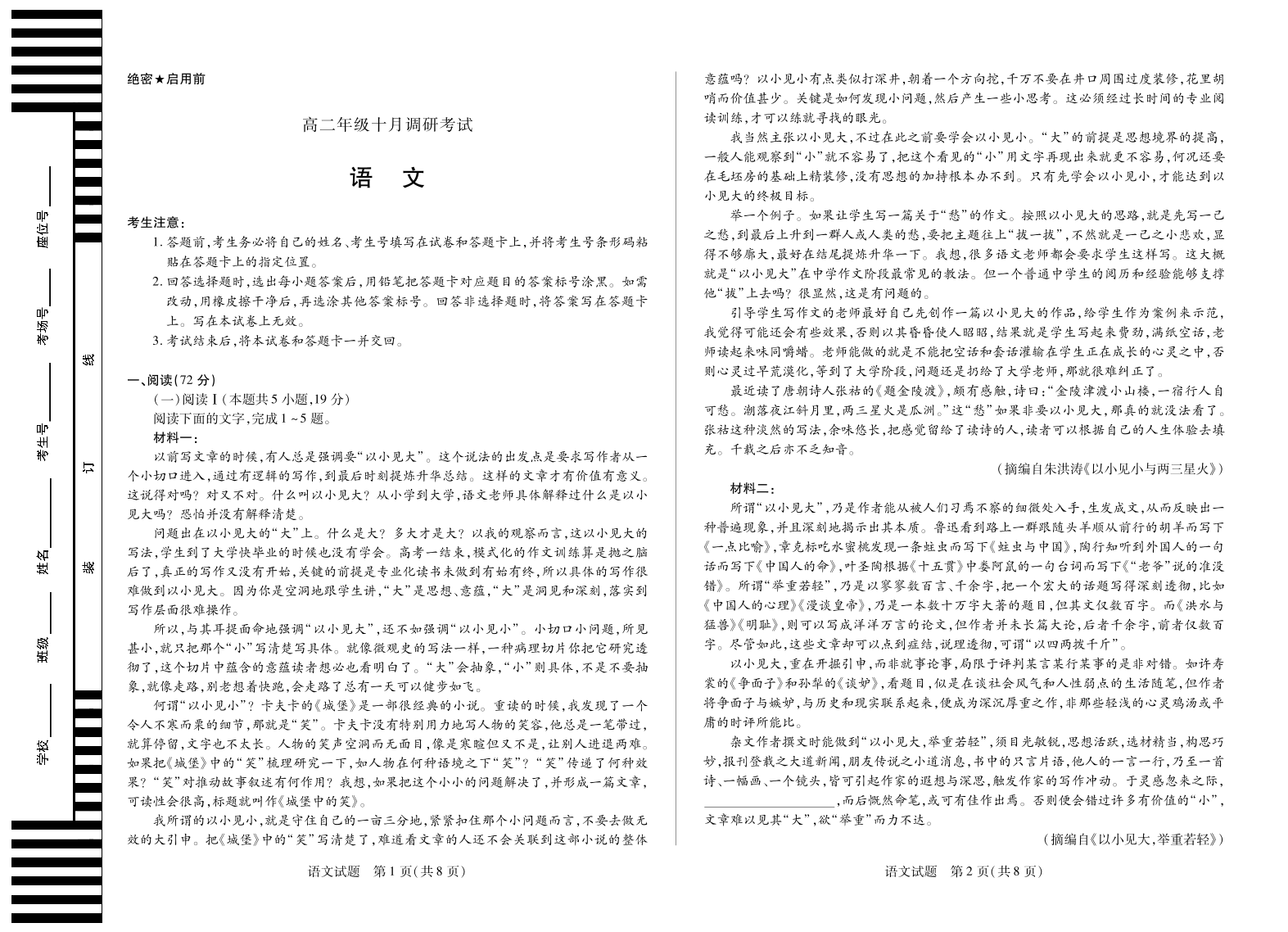 语文 安徽高二年级十月调研考试.pdf