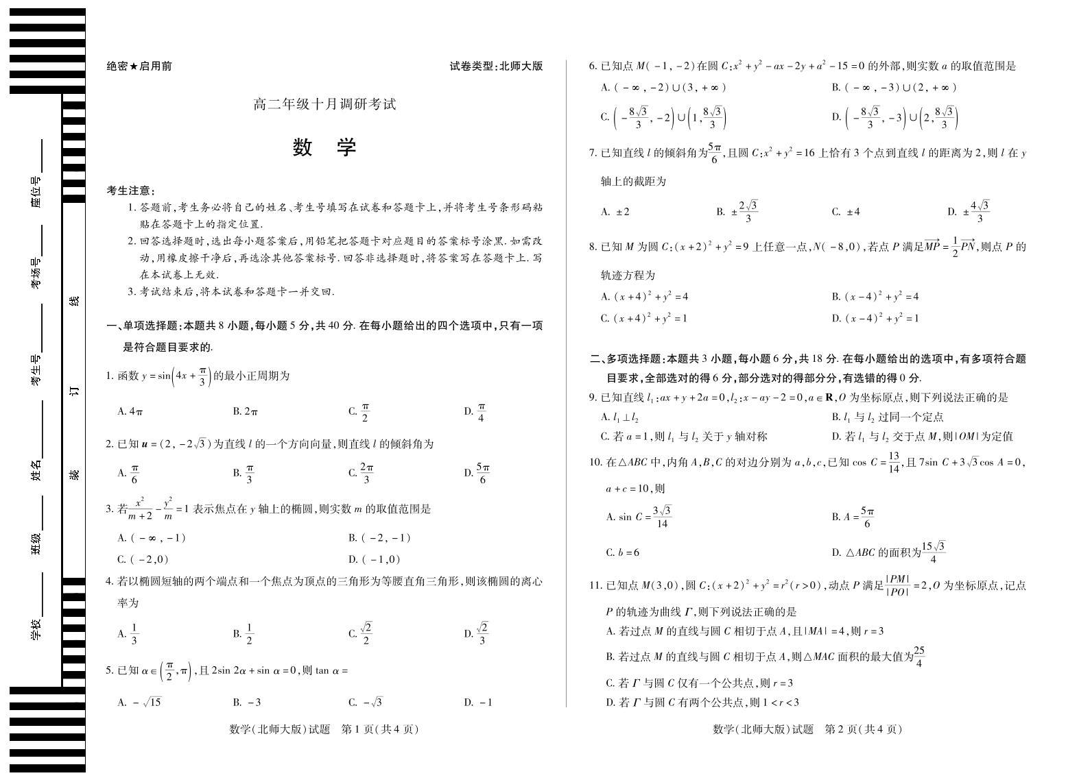 数学北师大版 安徽高二年级十月调研考试.pdf