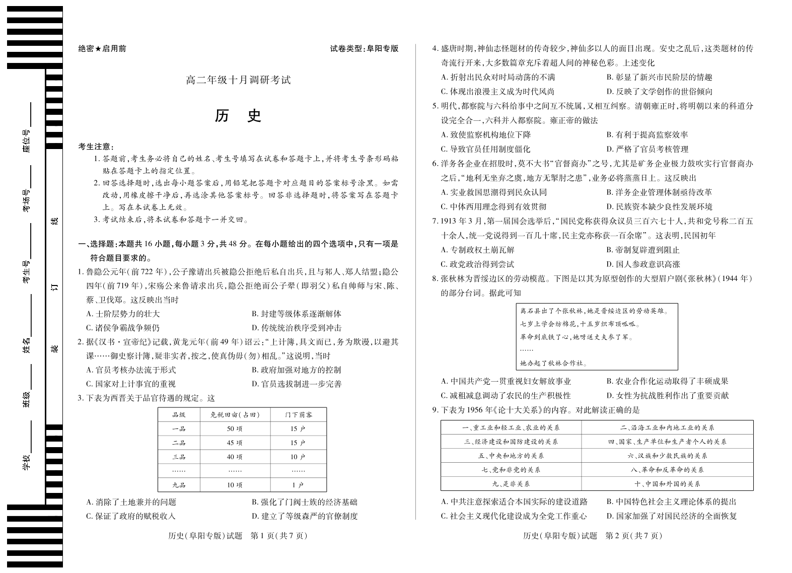 历史阜阳专版 安徽高二年级十月调研考试.pdf