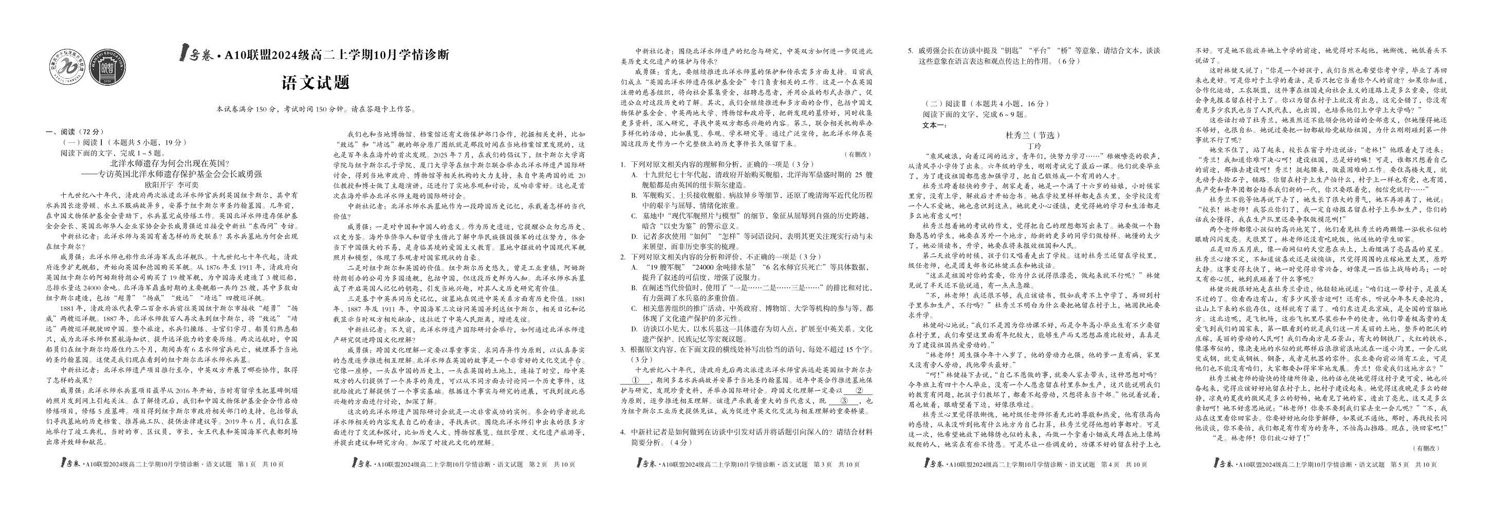 1号卷·A10联盟2024级高二上学期10月学情诊断 语文.pdf
