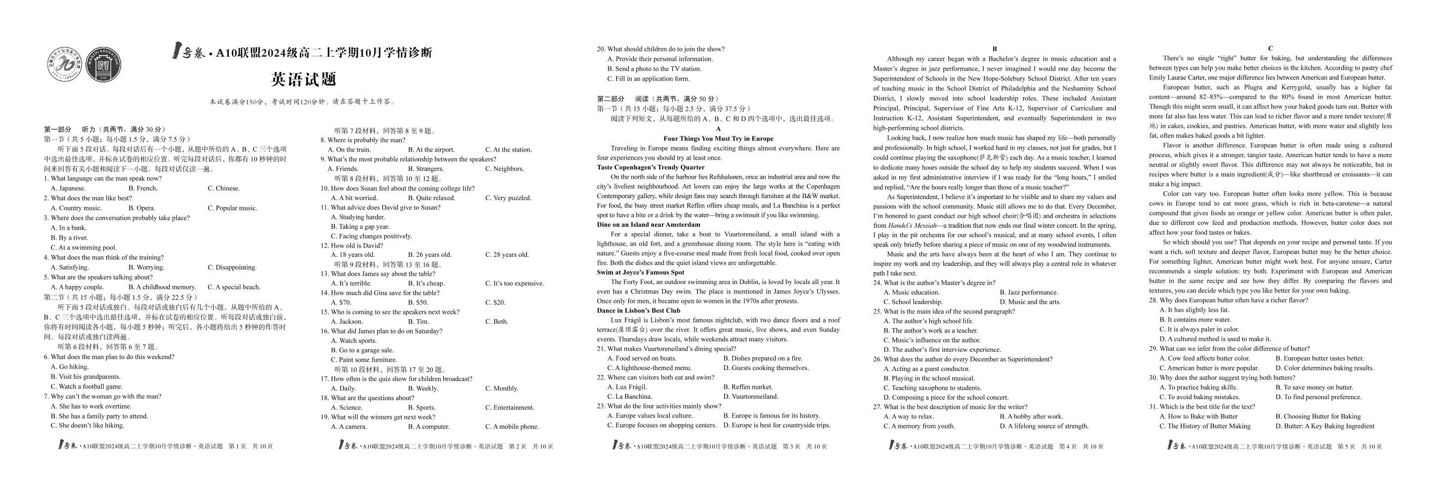 1号卷·A10联盟2024级高二上学期10月学情诊断 英语.pdf