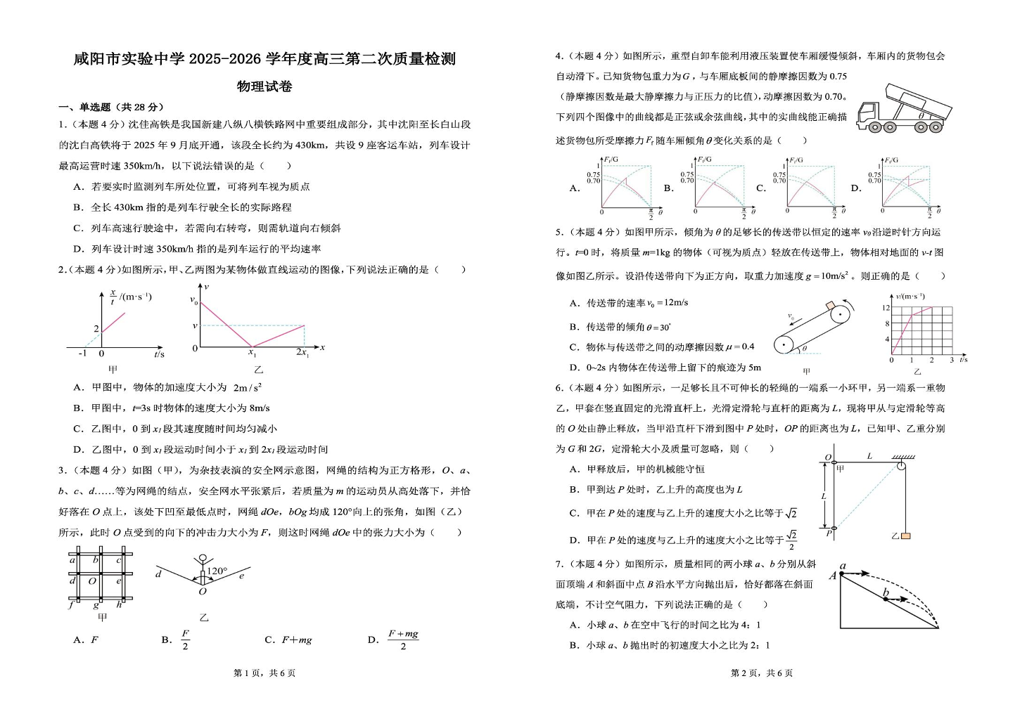 陕西省咸阳市实验中学2026届高三上学期第二次质量检测 物理.pdf