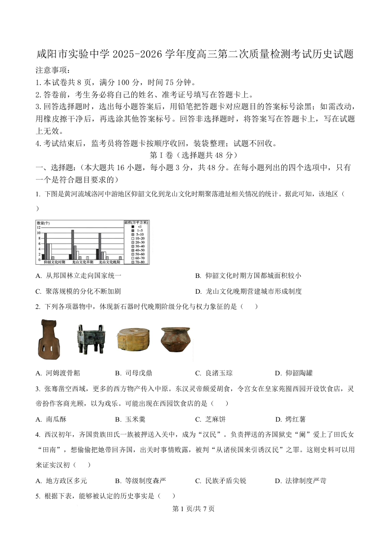 陕西省咸阳市实验中学2026届高三上学期第二次质量检测 历史.docx