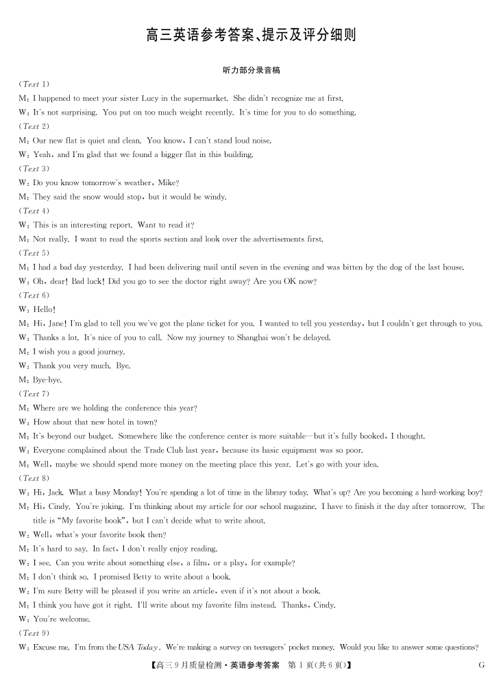 英语答案-10月10日质量检测.pdf