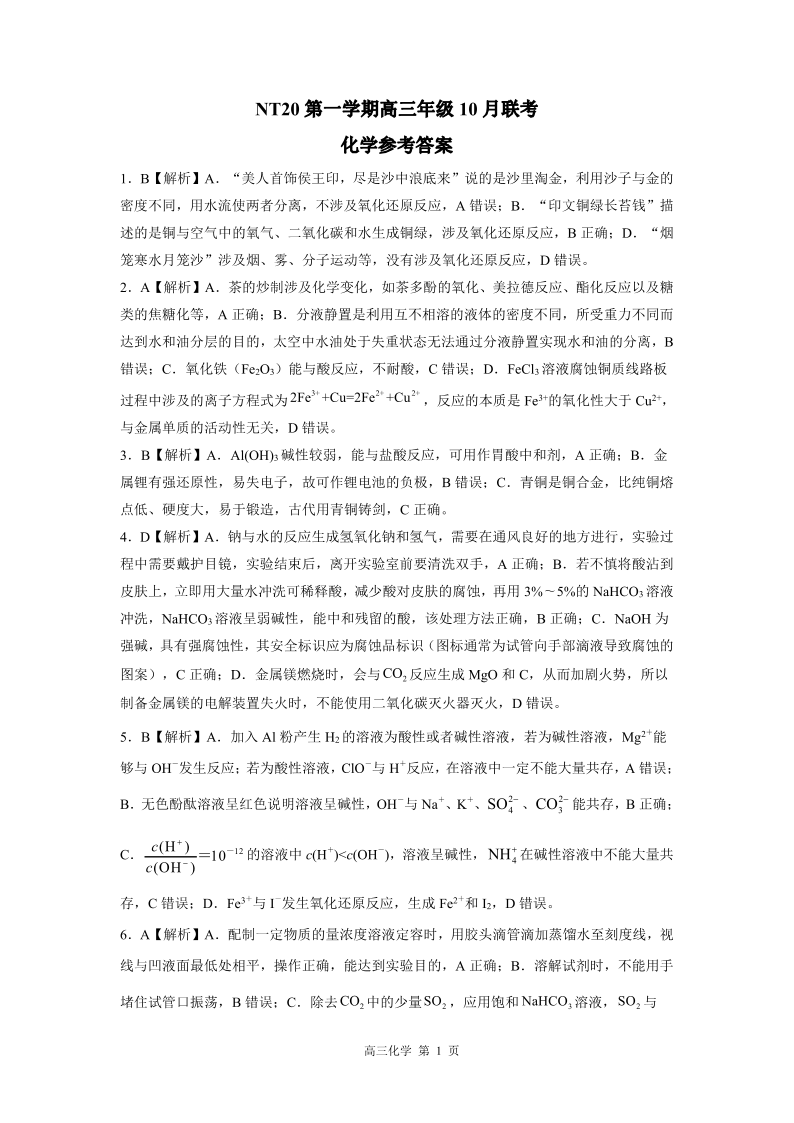 河北省NT20第一学期高三年级10月联考 化学答案.pdf