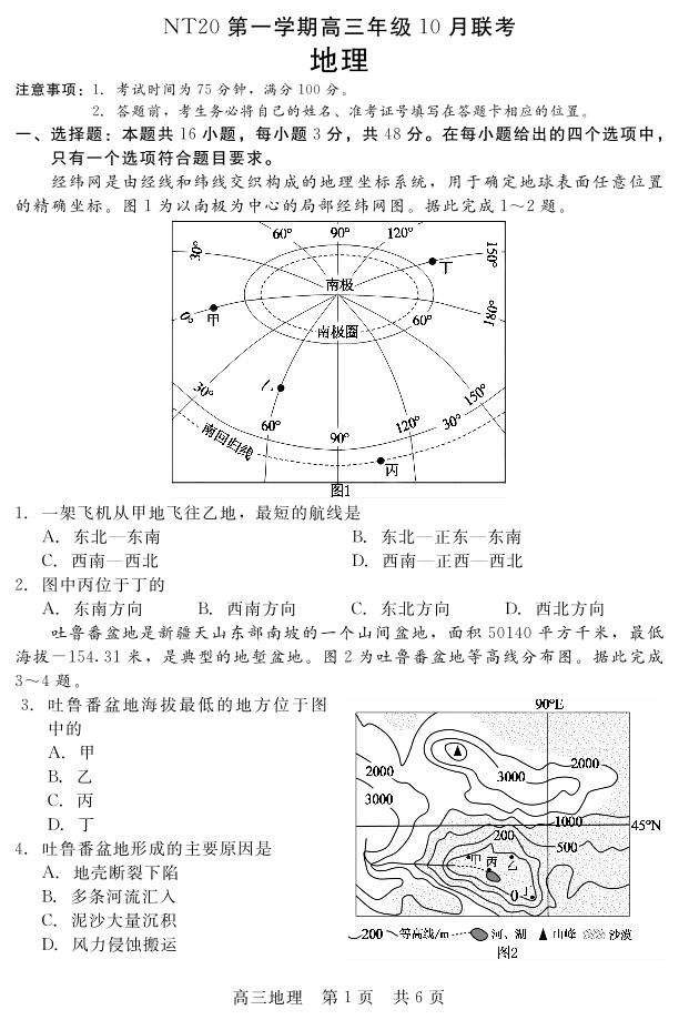 河北省NT20第一学期高三年级10月联考 地理.pdf