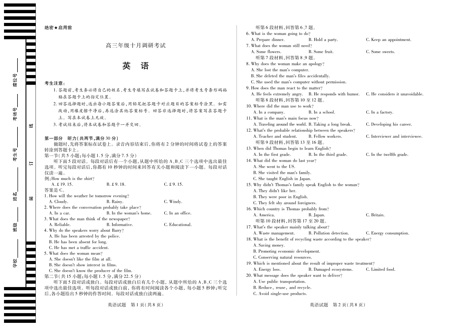 安徽省皖豫联盟2025-2026学年高三年级十月调研考试 英语.pdf