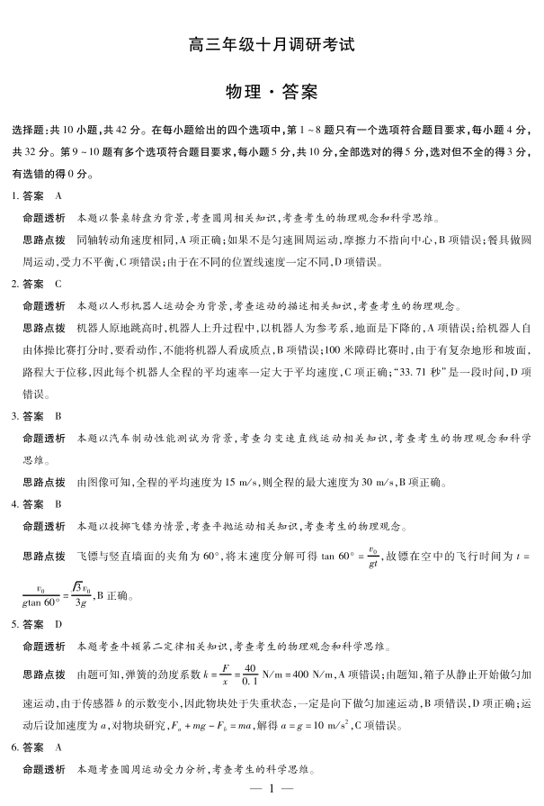 安徽省皖豫联盟2025-2026学年高三年级十月调研考试 物理答案.pdf