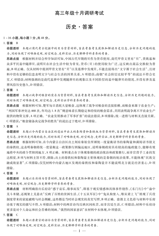 安徽省皖豫联盟2025-2026学年高三年级十月调研考试 历史答案.pdf