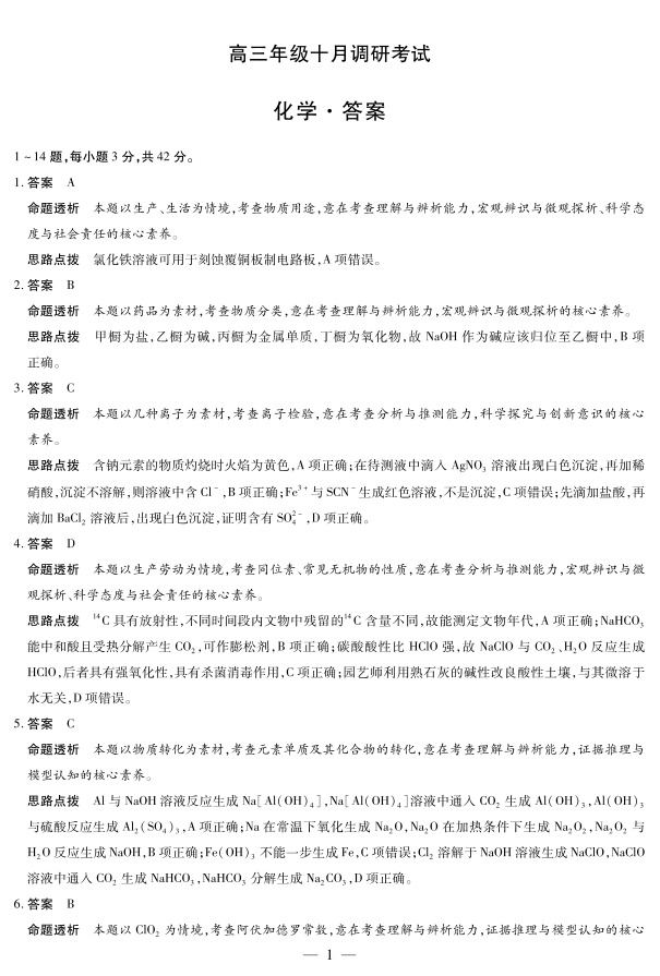 安徽省皖豫联盟2025-2026学年高三年级十月调研考试 化学答案.pdf