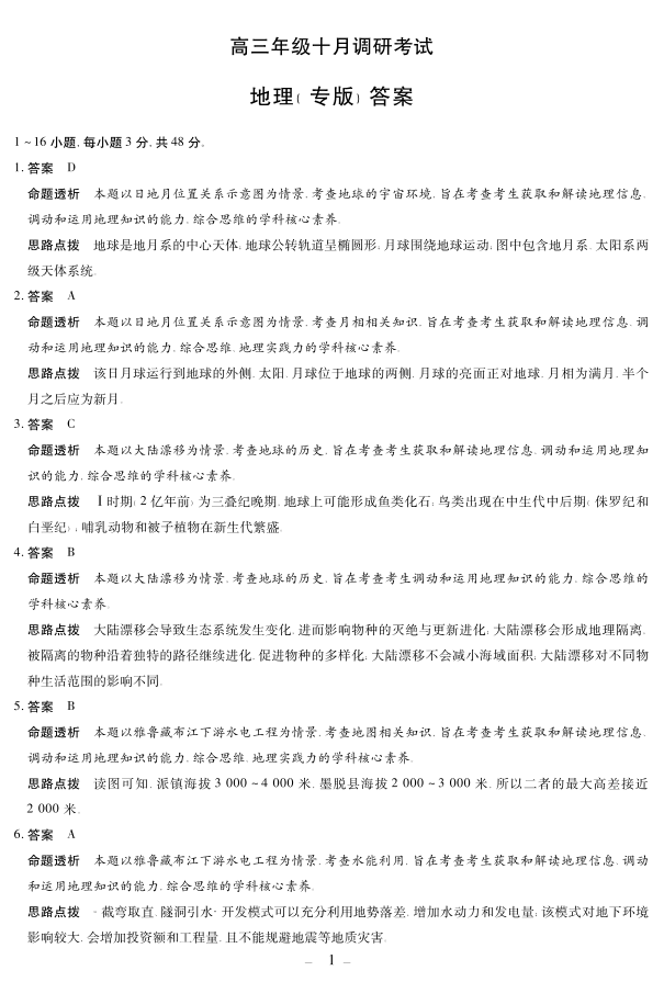 安徽省皖豫联盟2025-2026学年高三年级十月调研考试 地理专版答案.pdf